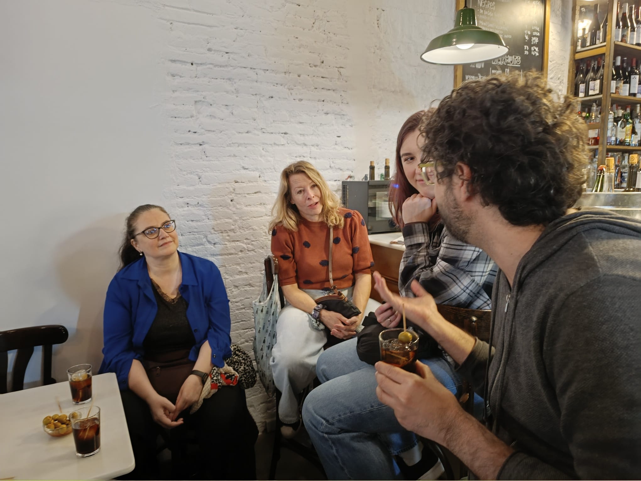 Last Friday we met there at 12:30 (the typical vermut time) and filled a long table with students and teachers. Some students already knew each other, but most did not, as they attend different courses at our Spanish school. Some are taking private Spanish lessons, while others are enrolled in extensive Spanish courses at different levels. With a good vermut, some olives and a couple of tapas, any shyness quickly disappeared. Before we knew it, we had spent two hours talking, laughing and joking in Spanish.