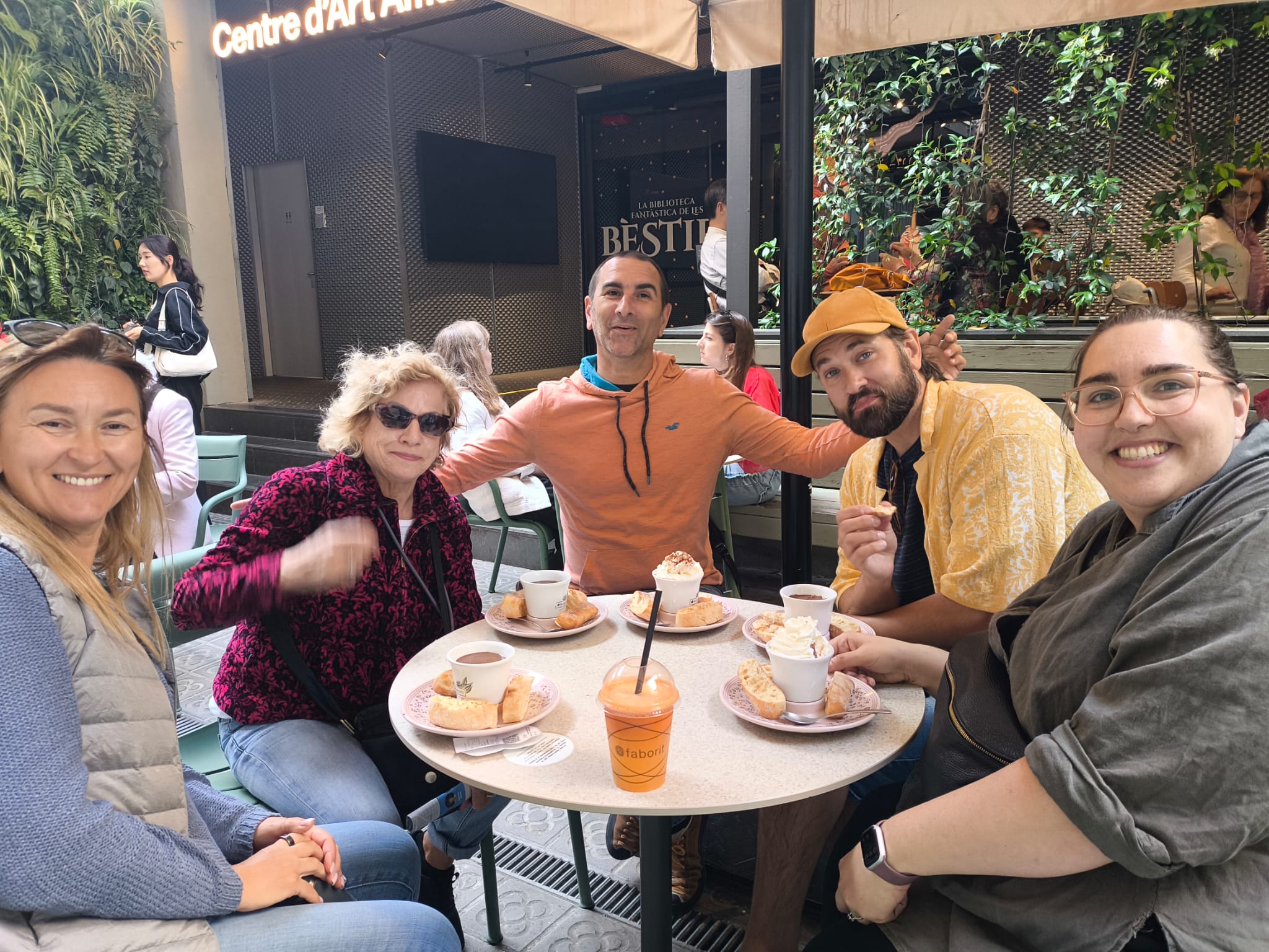 Después del paseo, hicieron una pausa para sentarse juntos y tomar algo, rodeados del ambiente festivo de Sant Jordi. Fue un momento perfecto para seguir conversando, relajarse y disfrutar de la compañía, siempre en español.